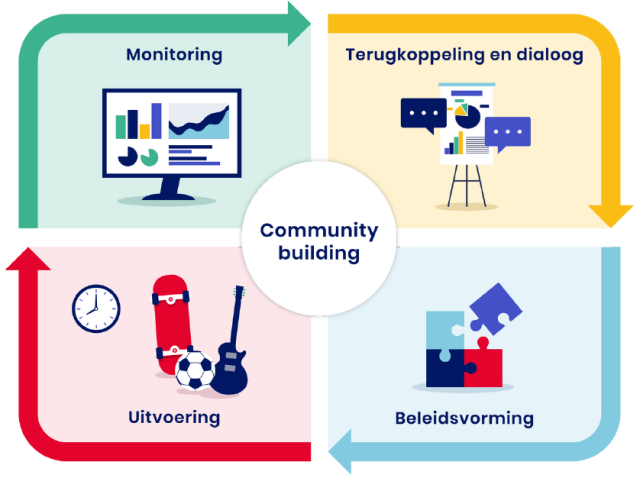 - Dialoog: De gemeente bespreekt de resultaten van de vragenlijst met lokale partners en bepaalt gezamenlijk de focus en de belangrijkste veranderpunten.